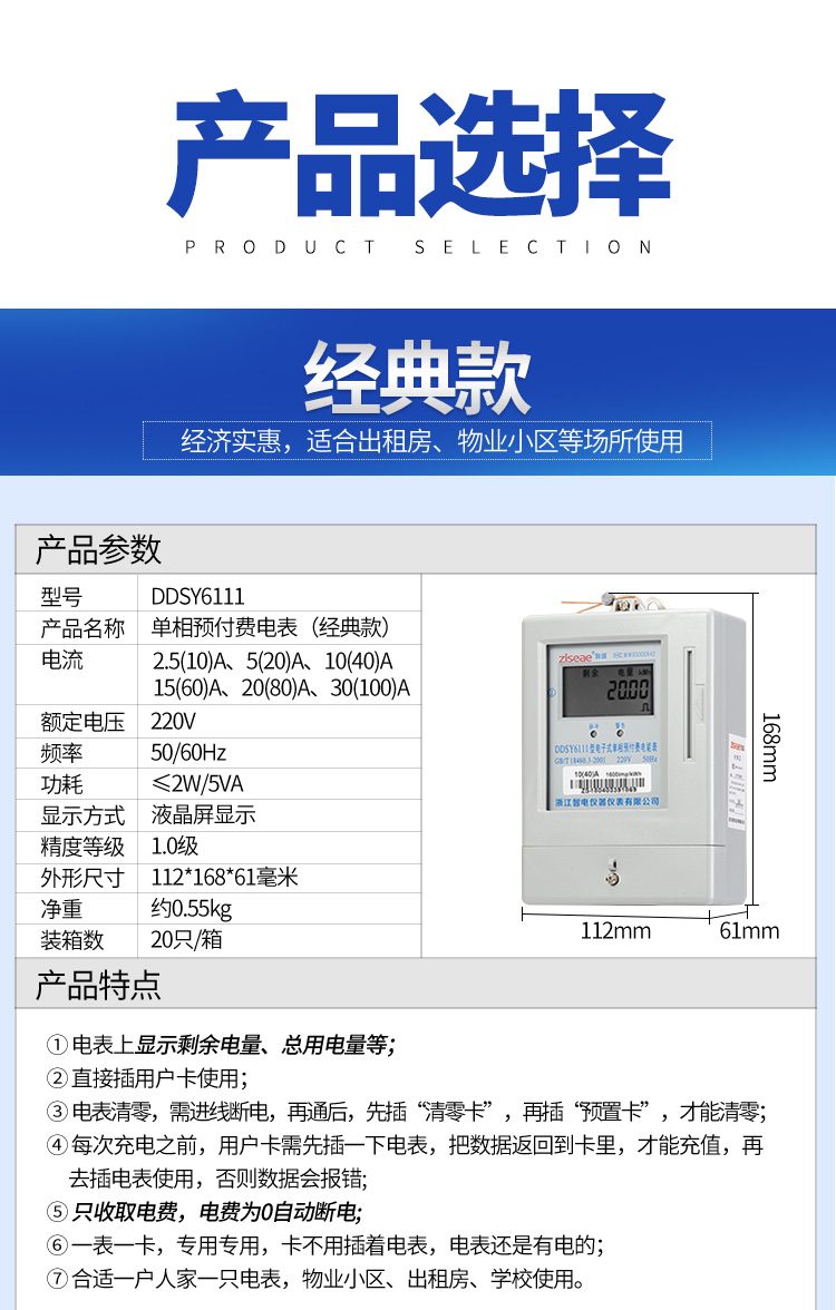 (2)預(yù)付費(fèi)電表的功能:經(jīng)典款電表是上顯示剩余電量、總用電量等,1代物業(yè)版電表上顯示剩余于金額、總用電量等,2代物業(yè)版電表上顯示剩余金額、總用電量、物業(yè)、房租剩余天數(shù)、北京時(shí)間等具體功能如下。