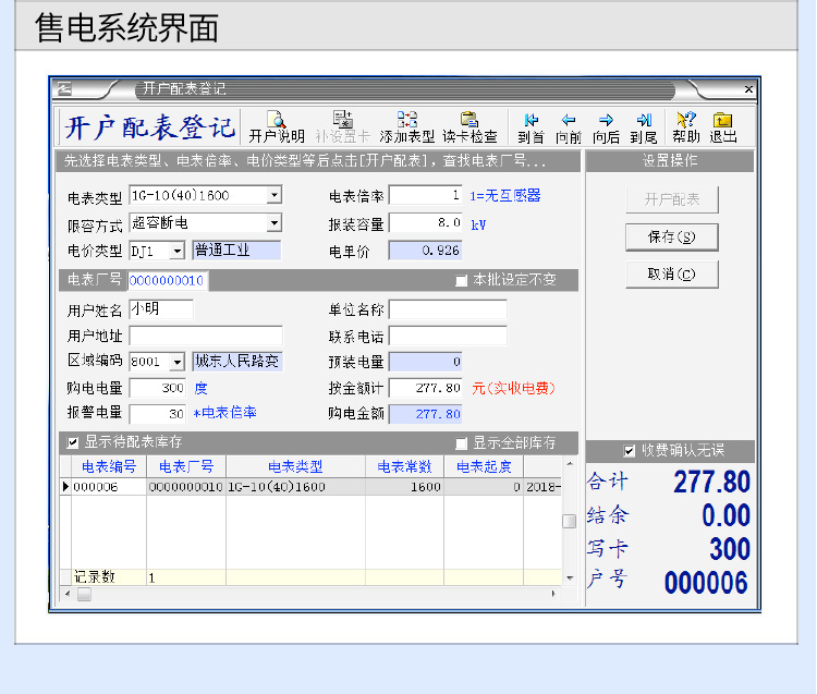 (6)預(yù)付費(fèi)電表的使用流程:1將IC卡插入讀卡器 2輸入要充值的金額 3電影充值發(fā)票 4收取費(fèi)用 5拔出IC卡 6將IC卡插入電表使用,具體操作如下。