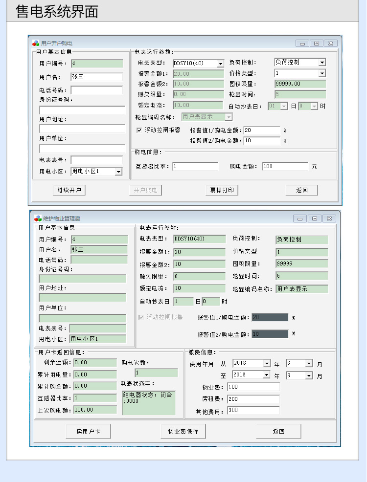 (1)預(yù)付費(fèi)電能表歷經(jīng)多年發(fā)展,由開始的只能收取電費(fèi),發(fā)展到可以代收物業(yè)費(fèi)和房租費(fèi)的功能,后續(xù)系統(tǒng)升級為除控制用戶用電外,還可控制用戶的物業(yè)費(fèi)或房租費(fèi)(物業(yè)費(fèi)或房租費(fèi)到期電表自行斷電,補(bǔ)交物業(yè)費(fèi)或房租費(fèi)后,預(yù)付費(fèi)電表方可來電),本章通過圖片形式講解用戶關(guān)于預(yù)付費(fèi)電度表的功能、操作系統(tǒng)、接線方式等問題。