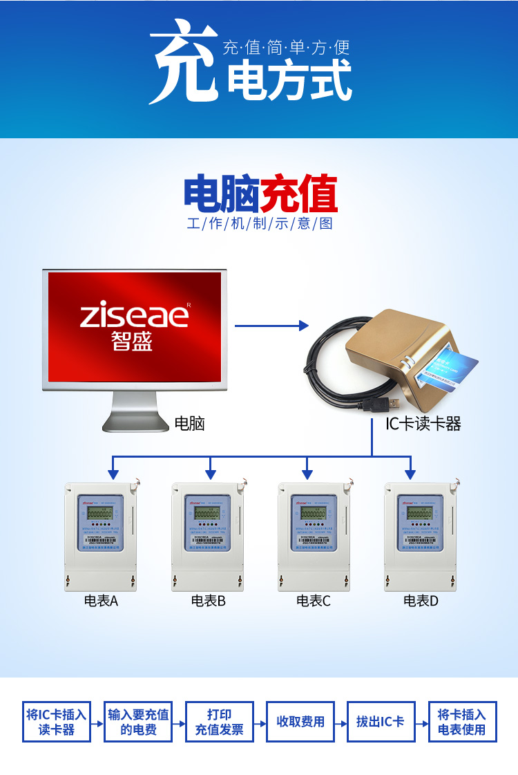 (二)充電方式:三相預(yù)付費(fèi)電度表(公用表)的充值系統(tǒng)安裝到電腦上,讀卡器連接電腦的USB進(jìn)口,就可以實(shí)現(xiàn)對(duì)電表IC的充值,充值成功后用戶就可以插電表使用了,可實(shí)現(xiàn)一表多卡和多表多卡的功能。(具體操作的書面教程和視頻教程可進(jìn)入官網(wǎng)查看)