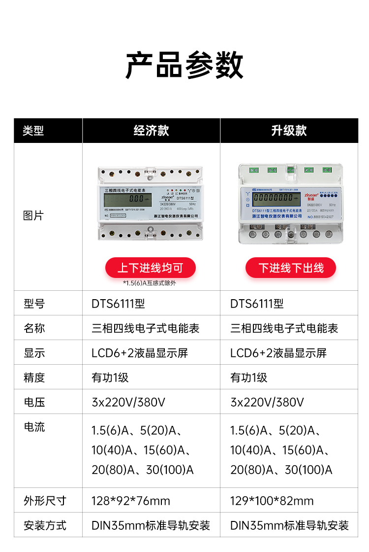 DTS6111、DSS6111型三相有功電能表,是一種室內三相電能表,是我公司為了適應我國電網改造,適應我國國情而設計開發(fā)的電能表。它具有較高的準確度和可行性。本儀表采用國際先進的低功耗模集成電路技術及SMT先進工藝,關鍵元器件選用進口品牌、長壽命器件,提高了產品的可靠性,延長了使用壽命。準確計量有功電能,且可以通過紅外通訊方式抄電量,讀數(shù)直觀且使用方便。本儀表設計符合標準GB/T 17215.321-2008《1級和2級靜止式交流有功電能表》、GB/T 17215.323-2008《2級和3級靜止式交流無功電能表》。