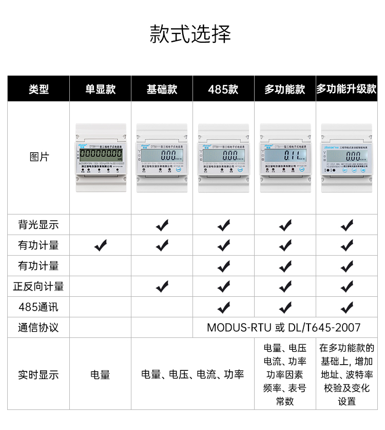 DTS6111、DSS6111型三相有功電能表,是一種室內三相電能表,是我公司為了適應我國電網改造,適應我國國情而設計開發(fā)的電能表。它具有較高的準確度和可行性。本儀表采用國際先進的低功耗模集成電路技術及SMT先進工藝,關鍵元器件選用進口品牌、長壽命器件,提高了產品的可靠性,延長了使用壽命。準確計量有功電能,且可以通過紅外通訊方式抄電量,讀數(shù)直觀且使用方便。本儀表設計符合標準GB/T 17215.321-2008《1級和2級靜止式交流有功電能表》、GB/T 17215.323-2008《2級和3級靜止式交流無功電能表》。