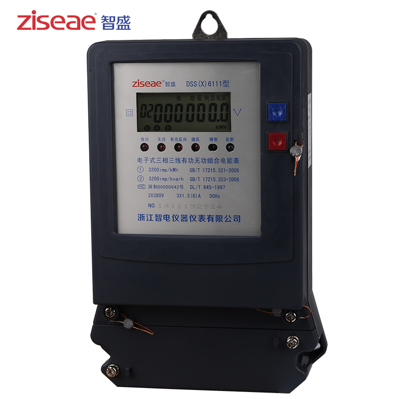 DTS(X)6111、DSS(X)6111型三相電子式有功無(wú)功組合電能表(以下簡(jiǎn)稱(chēng)電能表),是為了適應(yīng)電網(wǎng)改造設(shè)計(jì)開(kāi)發(fā)的有功、無(wú)功組合式電能表。它具有較高的準(zhǔn)確度和可行性。產(chǎn)品制造標(biāo)準(zhǔn)符合GB/T17215.321-2008《1級(jí)和2級(jí)靜止式交流有功電能表》、GB/T17215.323-2008、DL/T614-1997《多功能電能表》、DL/T645-1997《多功能電能表通信規(guī)約》等電力行業(yè)標(biāo)準(zhǔn)對(duì)三相靜止式電能表全部技術(shù)要求,是對(duì)需要進(jìn)行無(wú)功電量考核的企業(yè)、變電站或電廠理想的選擇,亦適合輸配電或配網(wǎng)自動(dòng)化用表。本產(chǎn)品可供計(jì)量參比頻率為50Hz電網(wǎng)中的三相交流有功和無(wú)功電能,并能進(jìn)行正、反向電能計(jì)量和紅外及RS485通訊功能。其特點(diǎn)是精度高、可靠性好、寬負(fù)荷、低功耗、誤差曲線平直、抗干擾能力強(qiáng)。