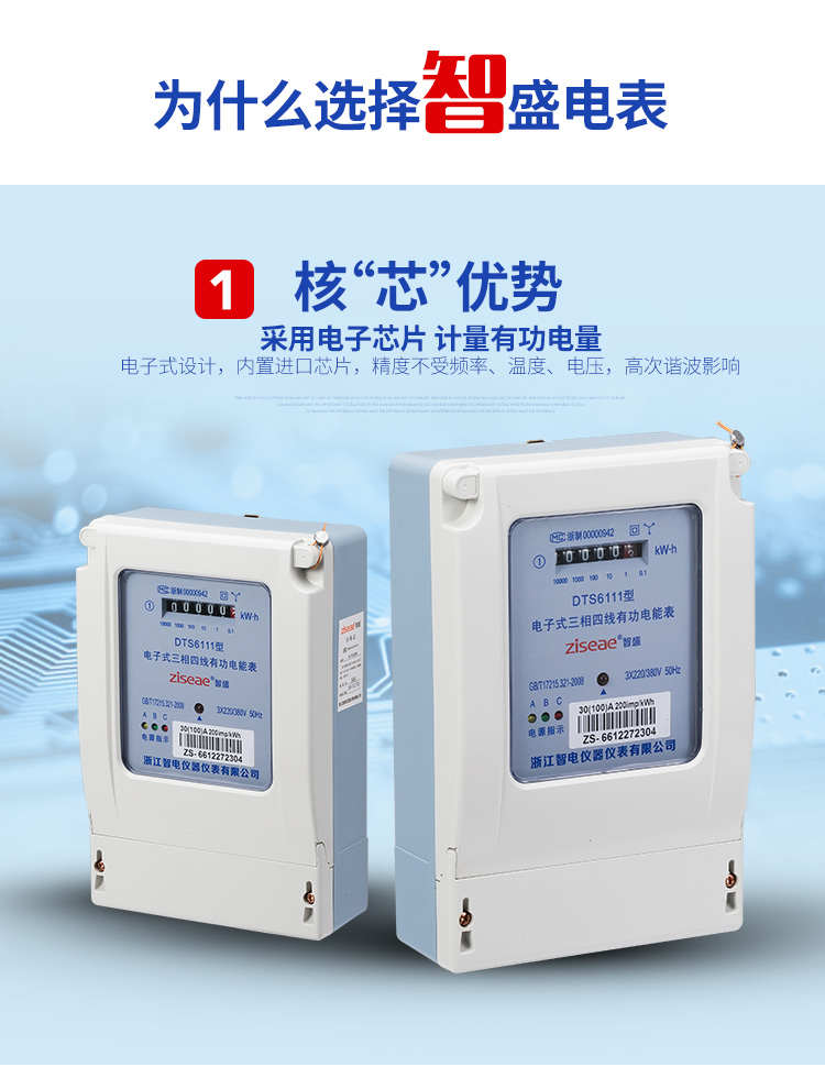 DTS6111型三相四線和DSS6111型三相三線兩種型號(hào)三相電子式有功電能表,內(nèi)部運(yùn)用了集成電路在經(jīng)過(guò)SMT工藝生產(chǎn)制作而成。結(jié)構(gòu)設(shè)計(jì)合理,制作工藝先進(jìn)。跟傳統(tǒng)的電能計(jì)量表對(duì)比,三相電子式有功電能表的測(cè)量準(zhǔn)確度高、性能可靠、節(jié)能。