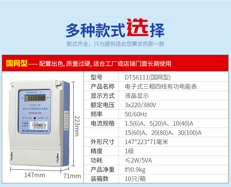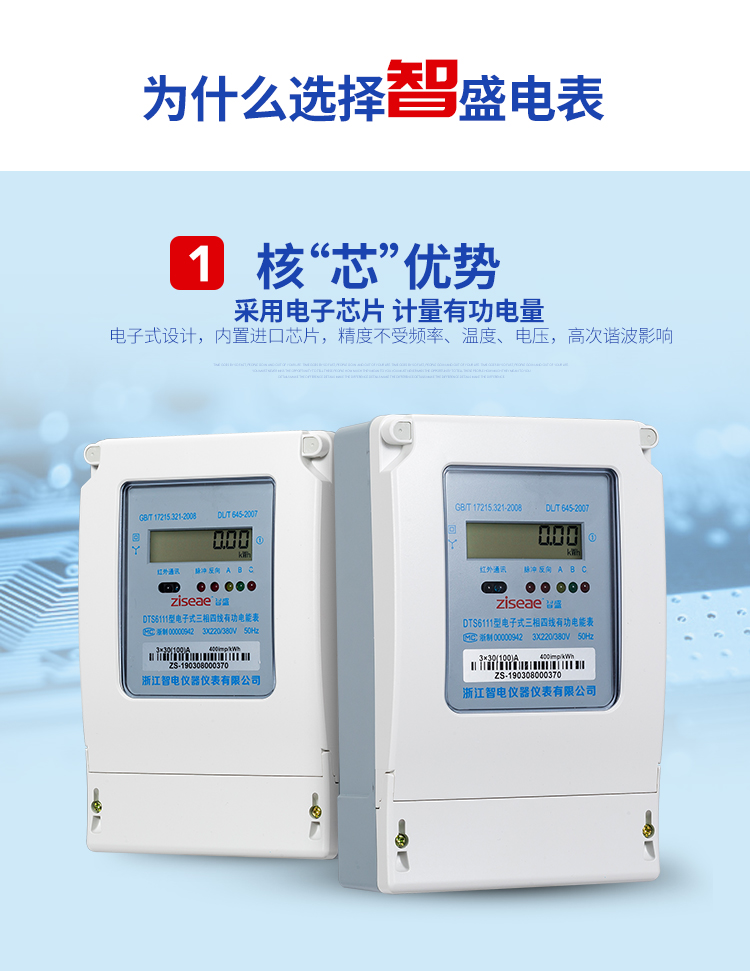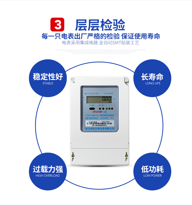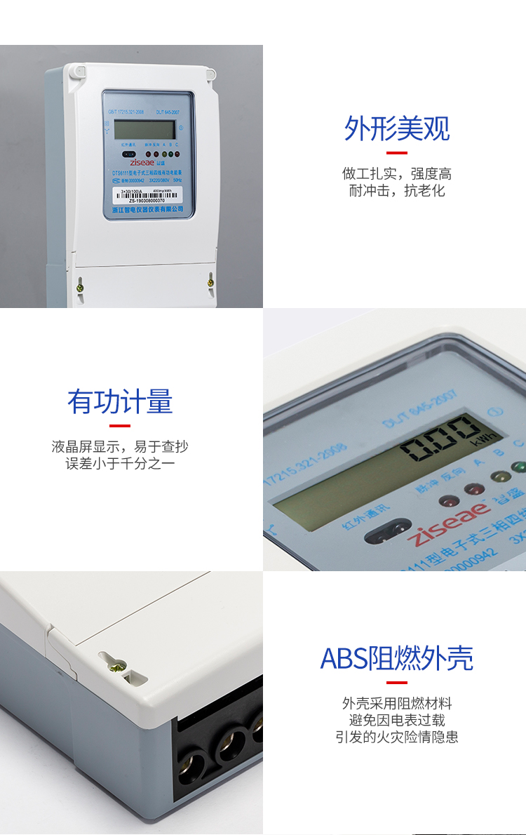 DTS6111型三相四線和DSS6111型三相三線兩種型號三相電子式有功電能表,內(nèi)部運(yùn)用了集成電路在經(jīng)過SMT工藝生產(chǎn)制作而成。結(jié)構(gòu)設(shè)計(jì)合理,制作工藝先進(jìn),跟傳統(tǒng)的電能計(jì)量表對比,三相電子式有功電能表的測量準(zhǔn)確度高、性能可靠、節(jié)能。