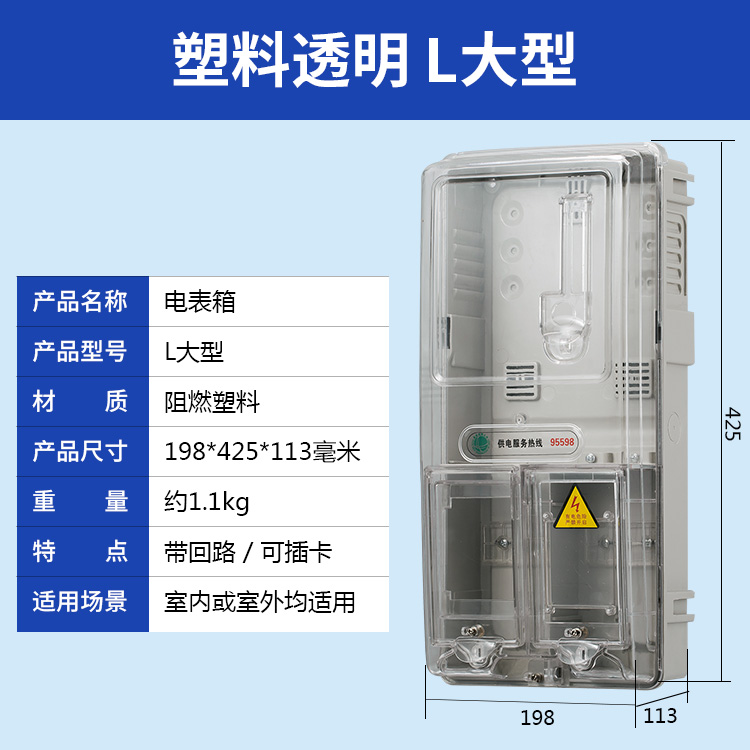 2.塑料透明電表箱采用集成化設計理念,整體造型美觀,外觀平整光亮,比例勻稱,結構合理。