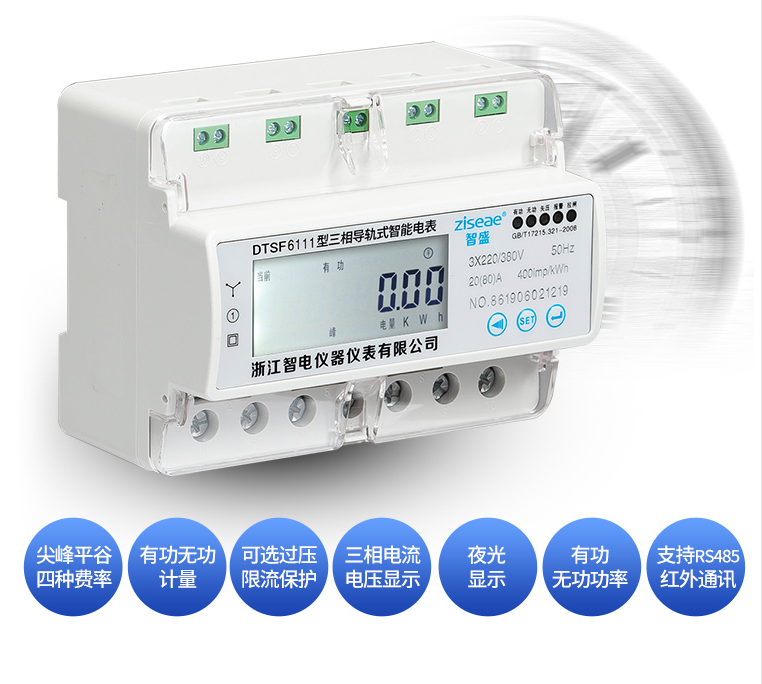 三相導(dǎo)軌式多費(fèi)率電能表DTSF6111-7系我公司采用微電子技術(shù)計(jì)量電能,采用進(jìn)口集成電路,應(yīng)用數(shù)字采樣處理技術(shù)及SMT工藝等先進(jìn)技術(shù)研制開發(fā)的電子式電能表。能直測量電能計(jì)量中正向有功電能,7位LCD顯示器顯示有功用電量,具有可靠性好、體積小、重量輕、外表美觀、工藝先進(jìn)、35mmDIN標(biāo)準(zhǔn)導(dǎo)軌式安裝等特點(diǎn):并具有良好的抗電磁干擾、低自耗節(jié)電、精度高、高過載、穩(wěn)定性強(qiáng)、防竊電、壽命長,液晶屏幕上可顯示當(dāng)前總電量,無功電量,尖峰平谷的電量,電流,電壓,功率,功率因素,頻率,支持RS485 DL/645--2007或MODBUS通訊規(guī)約。