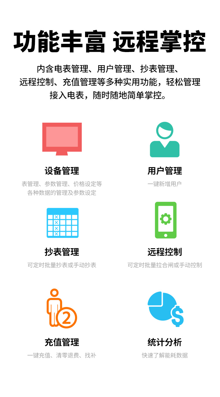 本公司DDSY6111\DDZY6111遠(yuǎn)程智能電表與本公司遠(yuǎn)程抄表系統(tǒng)和手機(jī)APP配套使用,遠(yuǎn)程抄表管理系統(tǒng)具有實(shí)時(shí)抄表、定時(shí)抄表外,還提供了設(shè)備管理功能,如告警、余額短信通知、遠(yuǎn)程充值、手機(jī)抄表、手機(jī)查詢、手機(jī)充值、預(yù)付費(fèi)、后付費(fèi)、自助充值機(jī)充值、遠(yuǎn)程拉合閘、各種查詢報(bào)表、統(tǒng)計(jì)報(bào)表下載等功能。