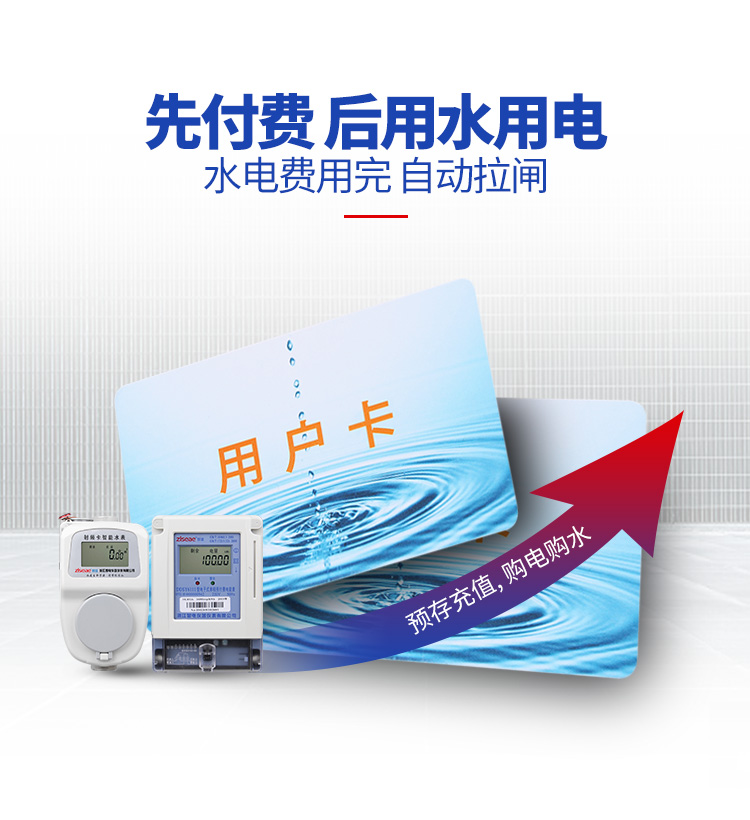 2.預(yù)付費(fèi)功能:先交費(fèi)、后用水,無費(fèi)自動關(guān)閥,交費(fèi)重新刷卡后自動通水。